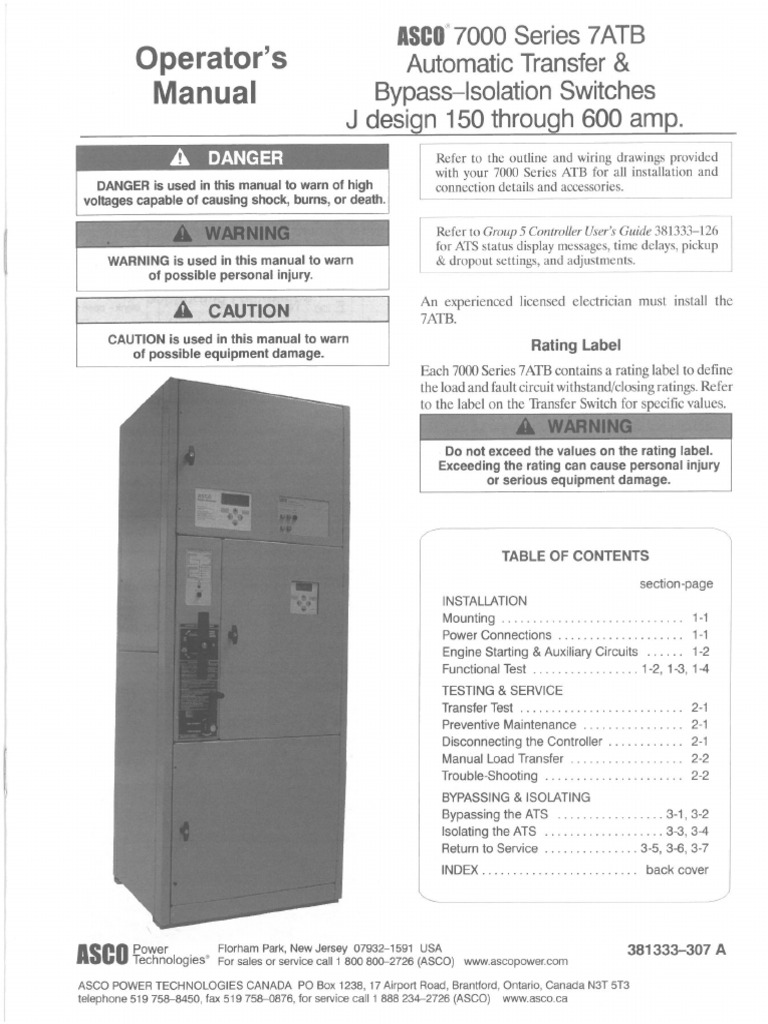 ASCO 7000 Series ATS Operator's Manual