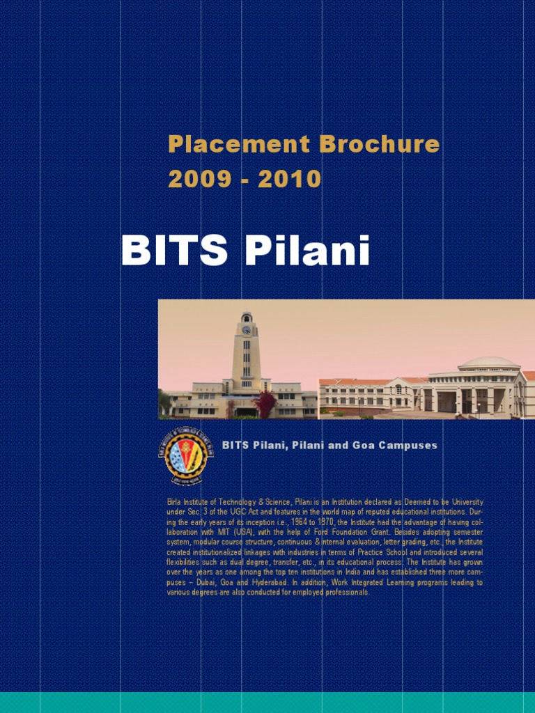 Placement Brochure BITS Pilani PDF Academic Degree Academia