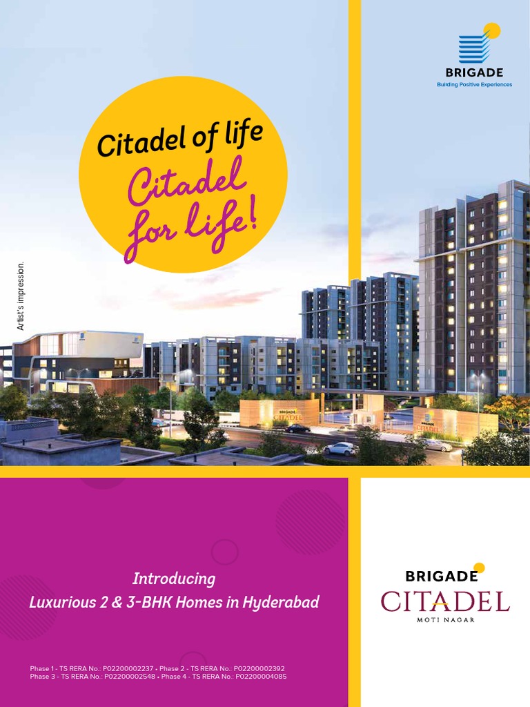 View & Download Pdf Brochure Of Brigade Citadel, Moti Nagar, Hyderabad.