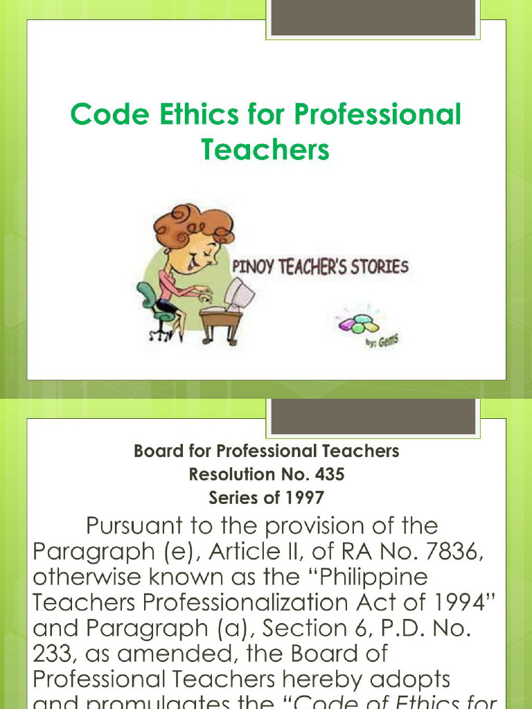 Code of Ethics For Professional Teachers PDF Profession Teachers