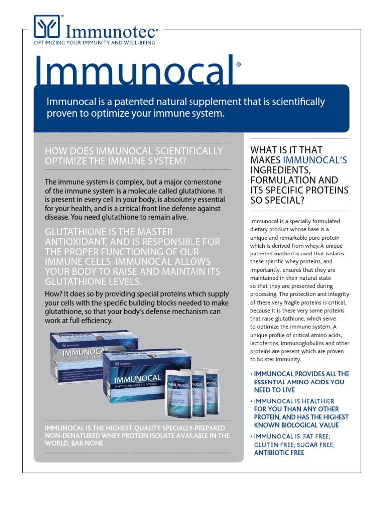 Immunocal Brochure PDF Inflammation Immune System