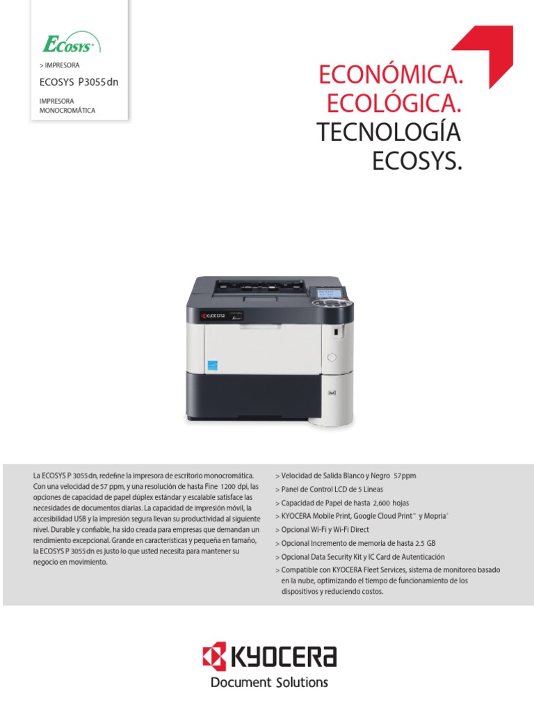 Caracteristicas Kyocera P3055DN PDF PDF Impresora