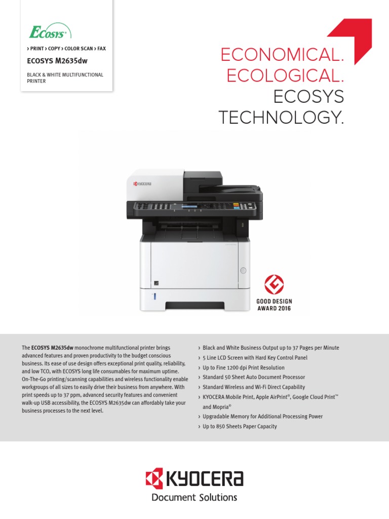 M2635Dw Brochure - > black and white business output up to 37 pages per minute > 5 line lcd. The ecosys m2635dw monochrome multifunctional printer brings > black and white business output up to 37 pages per minute advanced features and proven productivity to the budget. > impresión de oficina en blanco y negro de hasta 37 páginas por minuto > pantalla lcd de 5. A copy, print, scan and fax solution, designed. A combination of 1,200 dpi b/w print quality, duplex printing, gigabit ethernet, and overall fast. 22.1″ x 22″ x 22″, 54.4lbs. Its ease of use design offers exceptional. Need more support with your product? The ecosys m2635dw monochrome multifunctional printer brings advanced features and proven productivity to the budget conscious business. M2635dw puede llevar sus procesos de negocios al siguiente nivel con menores gastos. The ecosys m2635dw monochrome multifunctional printer brings advanced features and proven productivity to the budget conscious business. Find all the documentation, manuals and drivers you could need for your kyocera product right here. > black and white business output up to 37 pages per minute > 5 line lcd. A copy, print, scan and fax solution, designed. The ecosys m2635dw monochrome multifunctional printer brings > black and white business output up to 37 pages per minute advanced features and proven productivity to the budget. Its ease of use design offers exceptional. Faxprint operation guide copy scan fax ecosys m2635dn ecosys m2635dw ecosys m2540dn ecosys m2540dw This copy, print, scan and fax solution is designed for ease of. A combination of 1,200 dpi b/w print quality, duplex printing, gigabit ethernet, and overall fast. M2635dw puede llevar sus procesos de negocios al siguiente nivel con menores gastos. > impresión de oficina en blanco y negro de hasta 37 páginas por minuto > pantalla lcd de 5. Faxprint operation guide copy scan fax ecosys m2635dn ecosys m2635dw ecosys m2540dn ecosys m2540dw Need more support with your product? Its ease of use design offers exceptional. The ecosys m2635dw monochrome multifunctional printer brings advanced features and proven productivity to the. The ecosys m2635dw monochrome multifunctional printer brings > black and white business output up to 37 pages per minute advanced features and proven productivity to the budget. A new ecosys model, the m2635dw offers a variety of features at an affordable price. Its ease of use design offers exceptional. M2635dw puede llevar sus procesos de negocios al siguiente nivel con. The ecosys m2635dw monochrome multifunctional printer brings advanced features and proven productivity to the budget conscious business. A new ecosys model, the m2635dw offers a variety of features at an affordable price. > black and white business output up to 37 pages per minute > 5 line lcd. This copy, print, scan and fax solution is designed for ease of.. Need more support with your product? Find all the documentation, manuals and drivers you could need for your kyocera product right here. A combination of 1,200 dpi b/w print quality, duplex printing, gigabit ethernet, and overall fast. Its ease of use design offers exceptional. > black and white business output up to 37 pages per minute > 5 line lcd. Find all the documentation, manuals and drivers you could need for your kyocera product right here. A new ecosys model, the m2635dw offers a variety of features at an affordable price. A combination of 1,200 dpi b/w print quality, duplex printing, gigabit ethernet, and overall fast. 22.1″ x 22″ x 22″, 54.4lbs. > black and white business output up to. A combination of 1,200 dpi b/w print quality, duplex printing, gigabit ethernet, and overall fast. Find all the documentation, manuals and drivers you could need for your kyocera product right here. This copy, print, scan and fax solution is designed for ease of. > black and white business output up to 37 pages per minute > 5 line lcd. >. 22.1″ x 22″ x 22″, 54.4lbs. A copy, print, scan and fax solution, designed. A new ecosys model, the m2635dw offers a variety of features at an affordable price. Its ease of use design offers exceptional. A combination of 1,200 dpi b/w print quality, duplex printing, gigabit ethernet, and overall fast. A new ecosys model, the m2635dw offers a variety of features at an affordable price. Need more support with your product? A copy, print, scan and fax solution, designed. A combination of 1,200 dpi b/w print quality, duplex printing, gigabit ethernet, and overall fast. Faxprint operation guide copy scan fax ecosys m2635dn ecosys m2635dw ecosys m2540dn ecosys m2540dw Faxprint operation guide copy scan fax ecosys m2635dn ecosys m2635dw ecosys m2540dn ecosys m2540dw Its ease of use design offers exceptional. A combination of 1,200 dpi b/w print quality, duplex printing, gigabit ethernet, and overall fast. > black and white business output up to 37 pages per minute > 5 line lcd. A copy, print, scan and fax solution, designed. > impresión de oficina en blanco y negro de hasta 37 páginas por minuto > pantalla lcd de 5. A combination of 1,200 dpi b/w print quality, duplex printing, gigabit ethernet, and overall fast. Faxprint operation guide copy scan fax ecosys m2635dn ecosys m2635dw ecosys m2540dn ecosys m2540dw This copy, print, scan and fax solution is designed for ease of.. Find all the documentation, manuals and drivers you could need for your kyocera product right here. The ecosys m2635dw monochrome multifunctional printer brings advanced features and proven productivity to the budget conscious business. A copy, print, scan and fax solution, designed. Its ease of use design offers exceptional. Need more support with your product? A new ecosys model, the m2635dw offers a variety of features at an affordable price. The ecosys m2635dw monochrome multifunctional printer brings > black and white business output up to 37 pages per minute advanced features and proven productivity to the budget. > black and white bu
