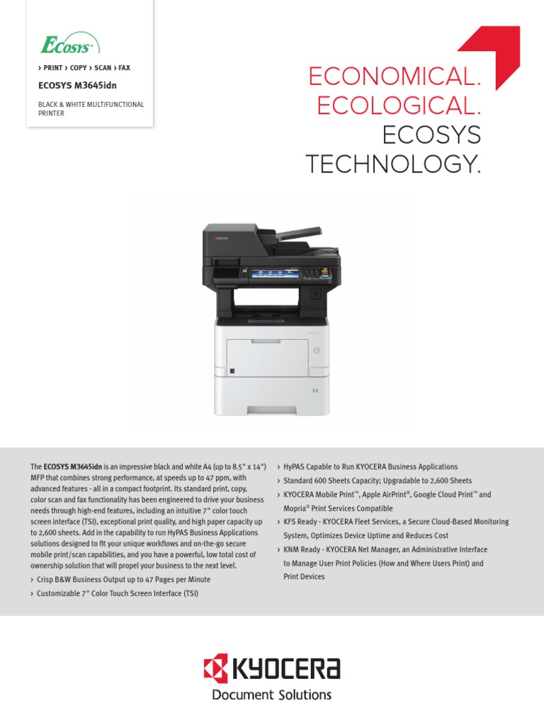 Ds Ecosys M3145idn Ecosys M3645idn PDF Fax Printer