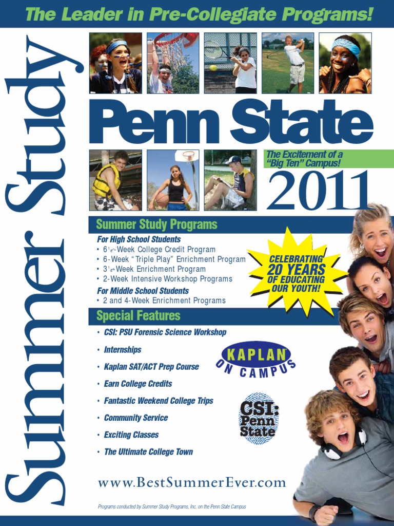 Summer Study at Penn State Brochure 2011 PDF Pennsylvania State