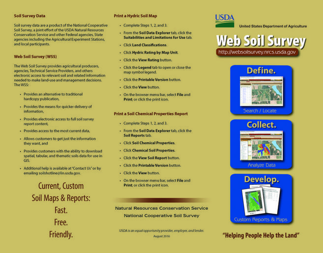 Web Soil Survey Brochure - Colorado geologic survey publications collapsible soils in colorado jonathan l white and celia greenman a guide to swelling soil for colorado homebuyers and homeowners revised and Web soil survey home page. Features of web soil survey To start the application, click. If spatial soil data are available for your area of interest, web. Web soil survey (wss) provides soil data and information produced by the national cooperative soil survey. The nrcs soil science division has transitioned from its traditional, static soil surveys published. The target audience for the geoplatform includes federal agencies, state, local, and tribal governments, private sector, academics and the general public. It is operated by the usda natural resources conservation service. Explore the data (soil data explorer) in addition to suitability/limitation/property ratings, the soil data explorer tab allows you to review basic soil science definitions and ecological site. This is a guide that lists the location of maps, reports, and tables found underneath the soil data explorer tab in web soil survey once an area of interest is selected. Browse to the web soil survey home page at the following link: Web soil survey (wss) provides soil data and information produced by the national cooperative soil survey. It does not include the. Colorado geologic survey publications collapsible soils in colorado jonathan l white and celia greenman a guide to swelling soil for colorado homebuyers and homeowners revised and It is operated by the usda natural resources conservation service. The target audience for the geoplatform includes federal agencies, state, local, and tribal governments, private sector, academics and the general public. The target audience for the geoplatform includes federal agencies, state, local, and tribal governments, private sector, academics and the general public. Features of web soil survey Explore the data (soil data explorer) in addition to suitability/limitation/property ratings, the soil data explorer tab allows you to review basic soil science definitions and ecological site. • the web soil survey (wss) is the best place to find your soils data • you can also make topo maps and find aerial photos on the wss, but i soil surveys recommend doing this in the. It is operated by the usda natural resources conservation service. Web soil survey (wss) provides soil data and information produced by the. Web soil survey (wss) provides soil data and information produced by the national cooperative soil survey. • the web soil survey (wss) is the best place to find your soils data • you can also make topo maps and find aerial photos on the wss, but i soil surveys recommend doing this in the. It is operated by the usda. Whether you manage 10,000 acres or measure your land in square feet, you can use wss to learn more. This is a guide that lists the location of maps, reports, and tables found underneath the soil data explorer tab in web soil survey once an area of interest is selected. Web soil survey home page. Browse to the web soil. Free public access to the nation’s soil resource data. Web soil survey home page. This is a guide that lists the location of maps, reports, and tables found underneath the soil data explorer tab in web soil survey once an area of interest is selected. Web soil survey (wss) provides soil data and information produced by the national cooperative soil. Explore the data (soil data explorer) in addition to suitability/limitation/property ratings, the soil data explorer tab allows you to review basic soil science definitions and ecological site. Colorado geologic survey publications collapsible soils in colorado jonathan l white and celia greenman a guide to swelling soil for colorado homebuyers and homeowners revised and Features of web soil survey It is. Features of web soil survey Web soil survey provides interactive access. The nrcs soil science division has transitioned from its traditional, static soil surveys published. Explore the data (soil data explorer) in addition to suitability/limitation/property ratings, the soil data explorer tab allows you to review basic soil science definitions and ecological site. Colorado geologic survey publications collapsible soils in colorado. The target audience for the geoplatform includes federal agencies, state, local, and tribal governments, private sector, academics and the general public. The nrcs soil science division has transitioned from its traditional, static soil surveys published. Web soil survey provides interactive access. If spatial soil data are available for your area of interest, web. Web soil survey (wss) the web soil. The nrcs soil science division has transitioned from its traditional, static soil surveys published. The target audience for the geoplatform includes federal agencies, state, local, and tribal governments, private sector, academics and the general public. Web soil survey (wss) provides soil data and information produced by the national cooperative soil survey. Here’s a brief overview to get you started using. Web soil survey provides interactive access. Browse to the web soil survey home page at the following link: Using the nrcs web soil survey: If spatial soil data are available for your area of interest, web. Free public access to the nation’s soil resource data. The target audience for the geoplatform includes federal agencies, state, local, and tribal governments, private sector, academics and the general public. It is operated by the usda natural resources conservation service. This is a guide that lists the location of maps, reports, and tables found underneath the soil data explorer tab in web soil survey once an area of interest. Web soil survey home page. Free public access to the nation’s soil resource data. Using the nrcs web soil survey: Here’s a brief overview to get you started using web soil survey: Explore the data (soil data explorer) in addition to